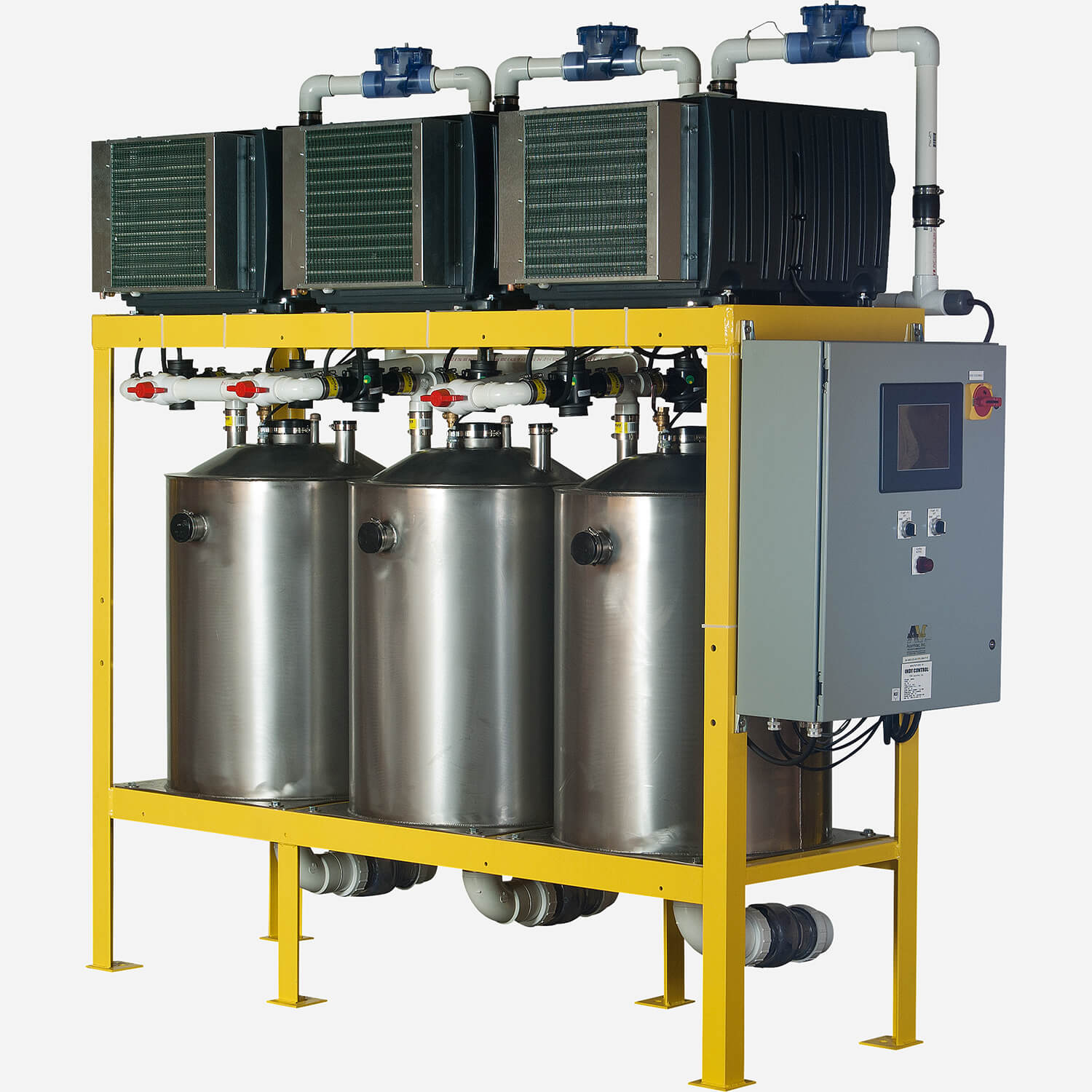 The 1000 Series vacuum toilet and fixture waste system is the highest-grade model, effectively and efficiently collecting the most waste with three 60-gallon collection tanks, triple recirculating pumps and a PLC driven automatic control panel.
